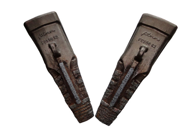 The application of tungsten to loader, dozer and excavator teeth results in massive increases in wearlife. The teeth stay sharper for longer and generally perform much better than blank teeth. The photos on this page show how sharp the loader teeth are after months in a highly abrasive sand quarry. The teeth have lost no length at all and continue to self sharpen due to the pattern applied at ARM CHINA.